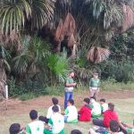 Iniciando na nascente do Parque de Exposição com um diálogo de percepção ambiental e, em seguida, seguiram em caminhada até a Praça da Lagoa, proporcionando uma experiência prática em ambiente natural, com a orientação dos Engenheiros Florestais Natson Siliprandi e Francilene Lisboa e do Técnico em Agropecuária Adelar de Alcantar.